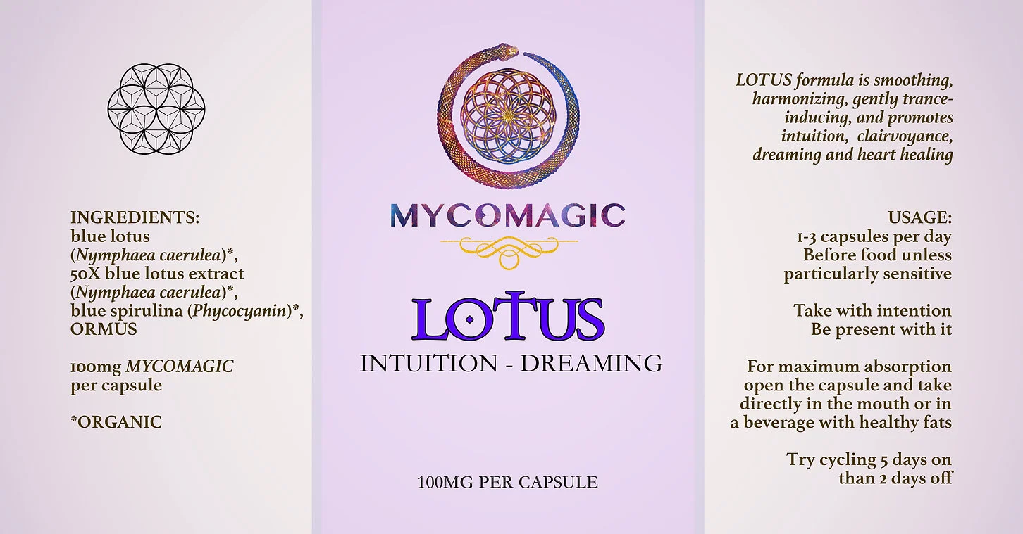 LOTUS is an enchanting blend featuring blue lotus (Nymphaea caerulea). Renowned for its gentle psychoactive properties, blue lotus promotes ludic dreaming and clairvoyance. Its essence is powerful yet gentle, harmonizing, and invites one into a subtle trance-like state.